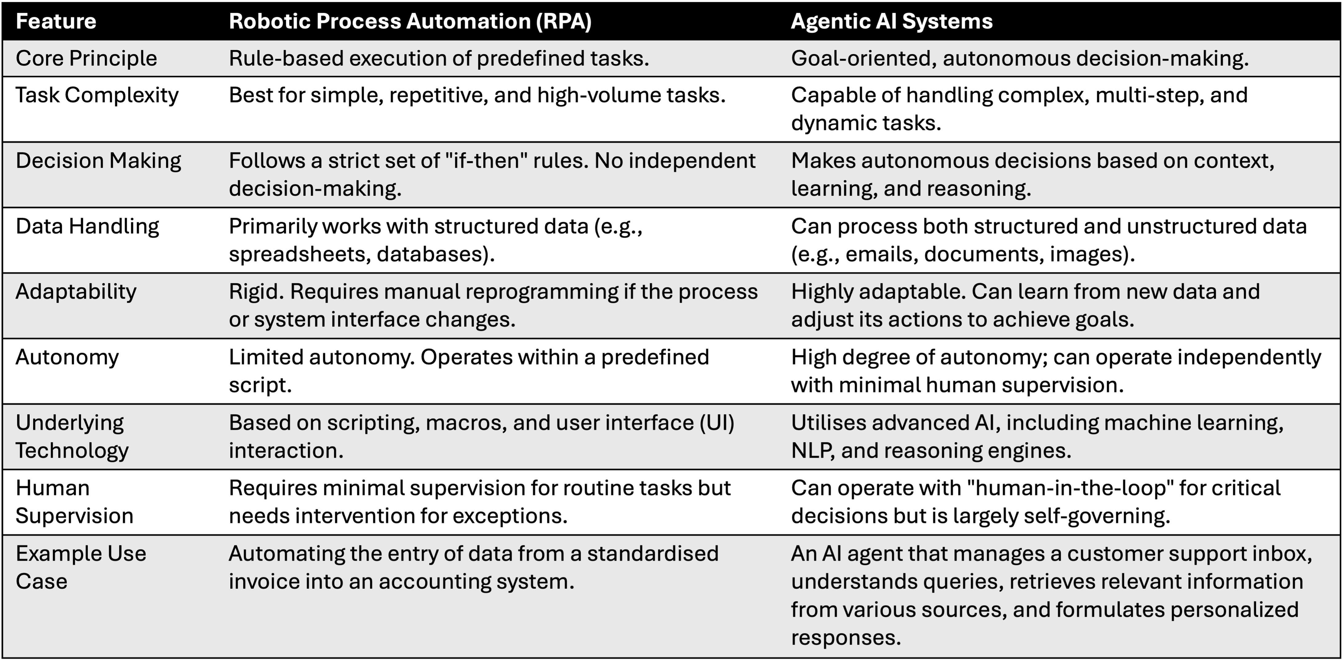 Table 1. RPA vs Agentic AI Systems.