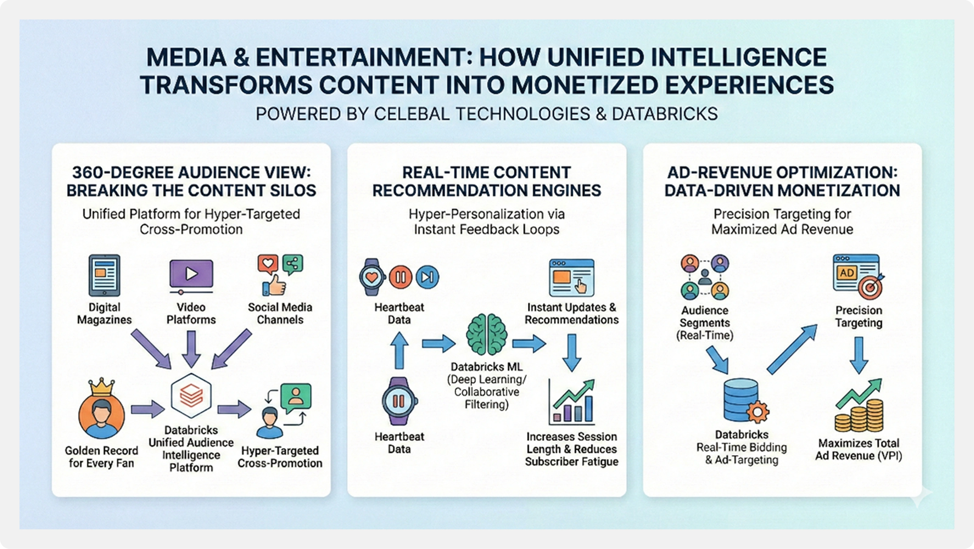 In the M&E world, ad inventory is a perishable asset. Celebal Technologies leverages Databricks to build real-time bidding and ad-targeting solutions.