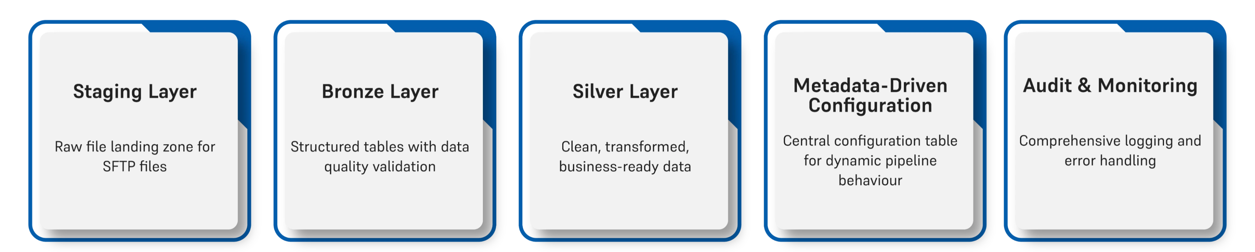 Building a robust SFTP to Lakehouse ETL pipeline with Microsoft Fabric provides organizations with a scalable, maintainable, and cost-effective solution for data ingestion. The metadata-driven approach ensures flexibility, while the medallion architecture provides clear data quality progression from raw to analytics-ready data.