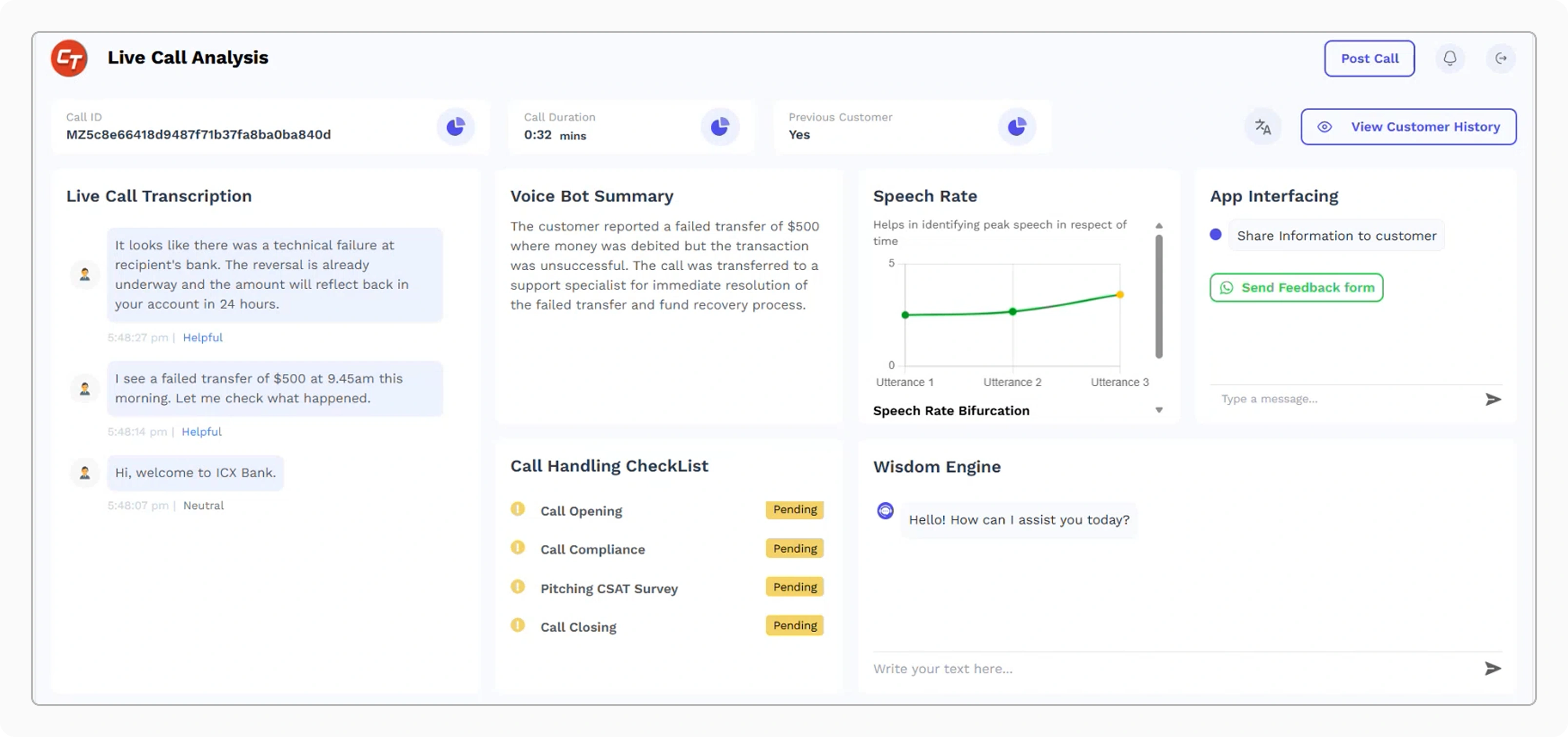 Real-time agent assists delivering a unified customer view, interaction history, sentiment analysis, and AI-driven next-best-action suggestions.